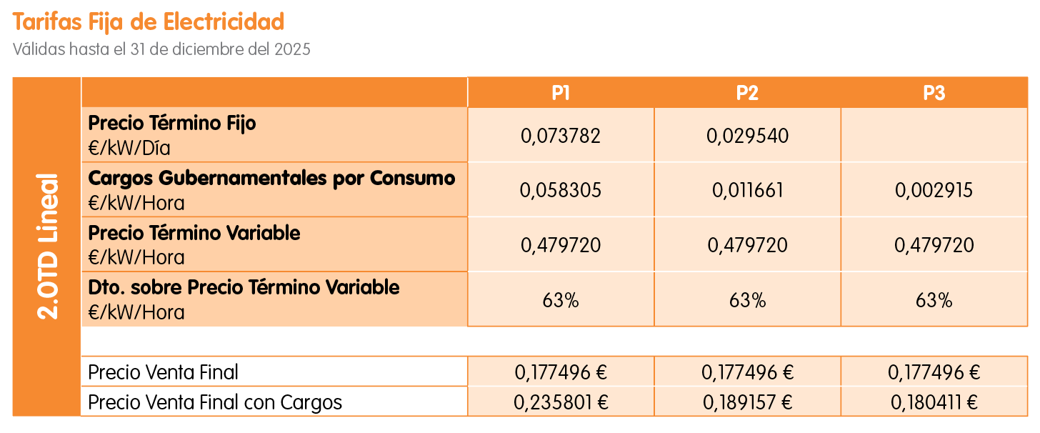 Tarifa Fija Luz 2.0TD Lineal