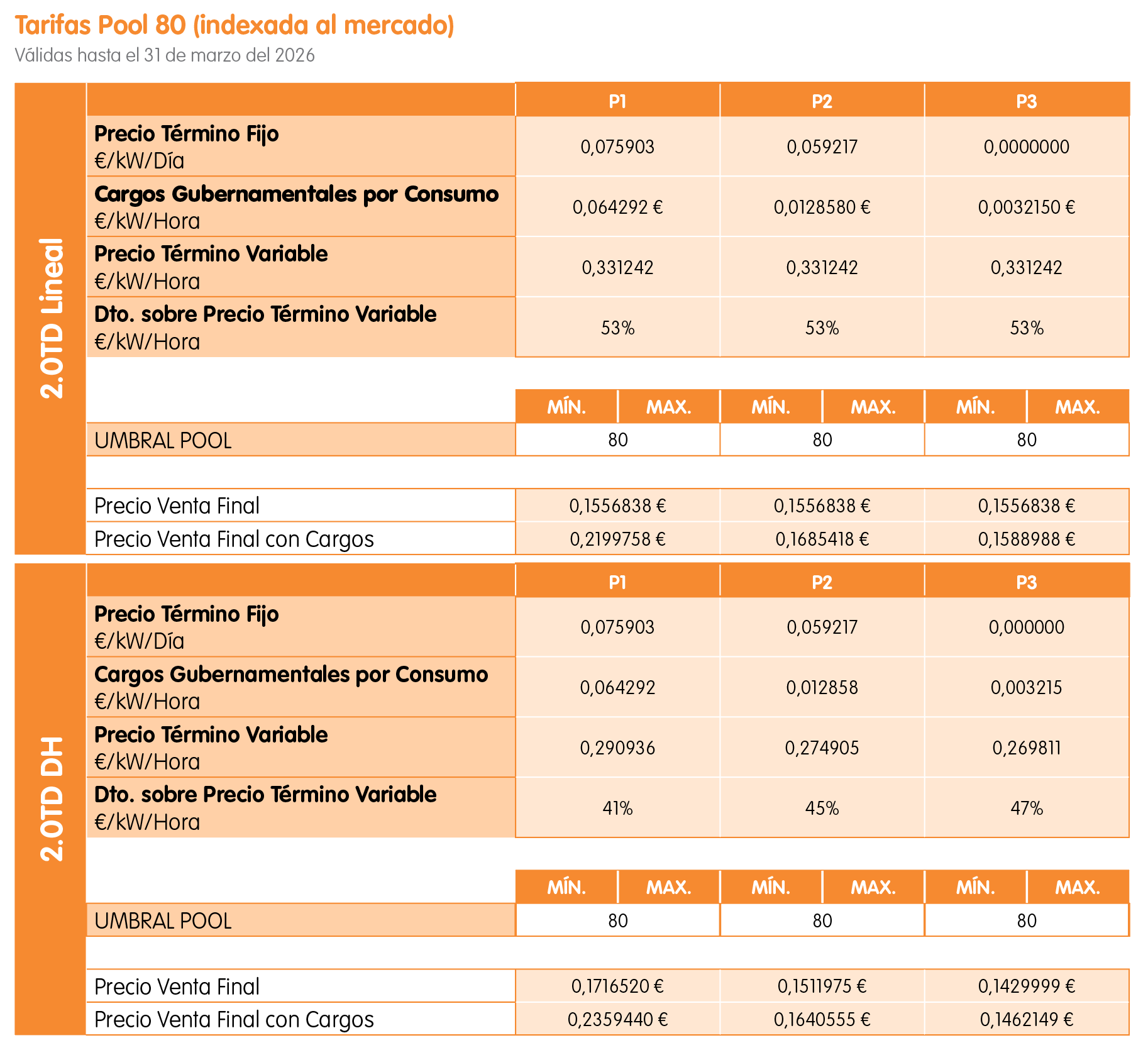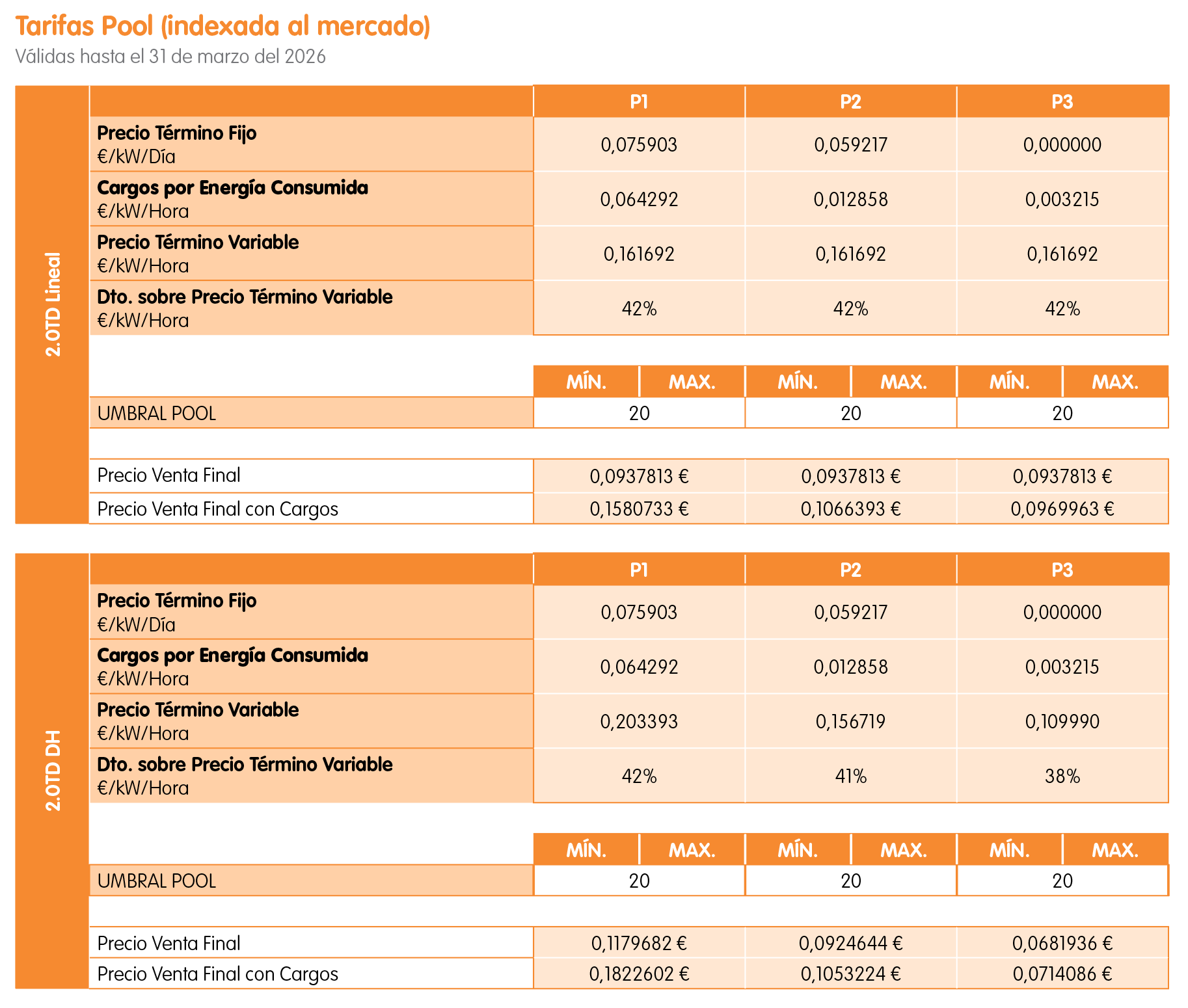 El precio mínimo y máximo del intervalo tendrá una vigencia de 12 meses desde la activación de la “Fórmula Pool”, transcurridos los cuales se establece en 0 €/MWh, sin que el cliente tenga obligación de permanencia desde ese momento.